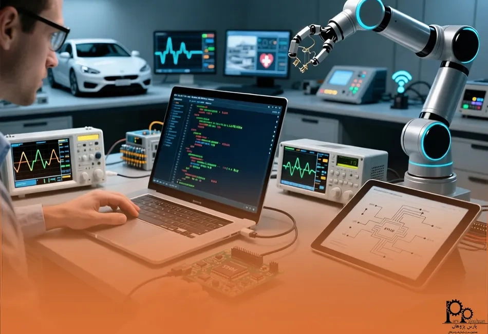 کنترل رباتها، سیستمهای خودکار صنعتی و تجهیزات خدماتی با میکروکنترلر ARM امکانپذیر است و نقش متخصصان رباتیک در طراحی و توسعه این سامانهها حیاتی است. - مهندس سامانههای خودرویی